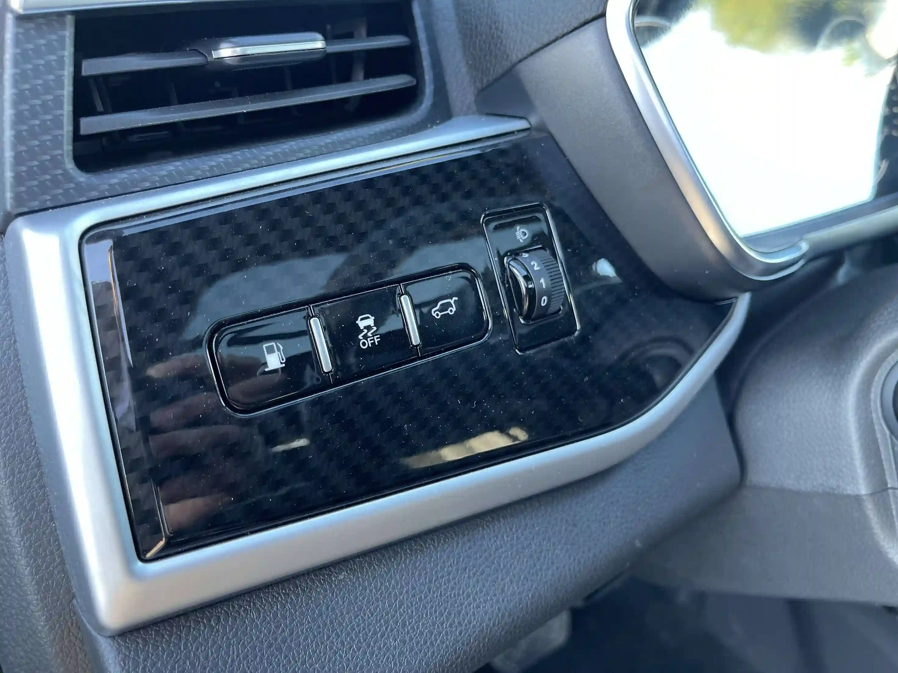 | Черная центральная консоль с черно-синей прострочкой |