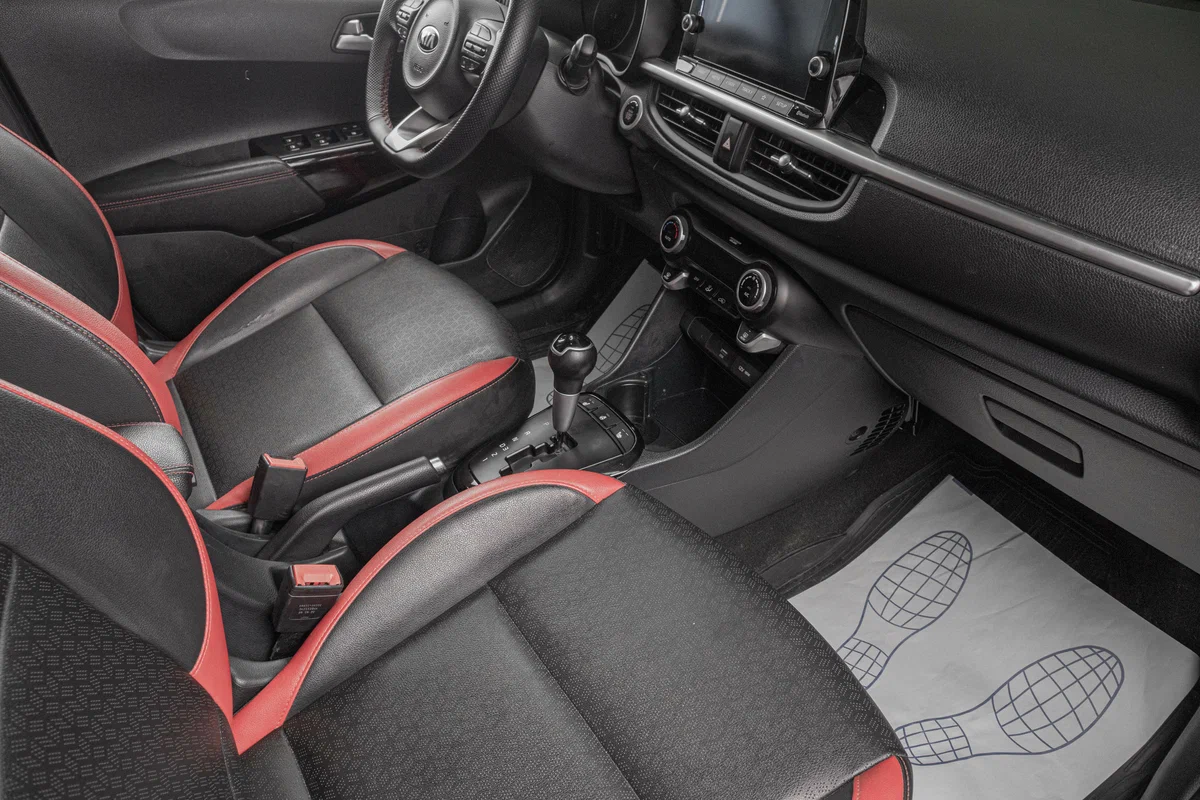 | Интерьер с отделкой искусственной кожей, с красными вставками |